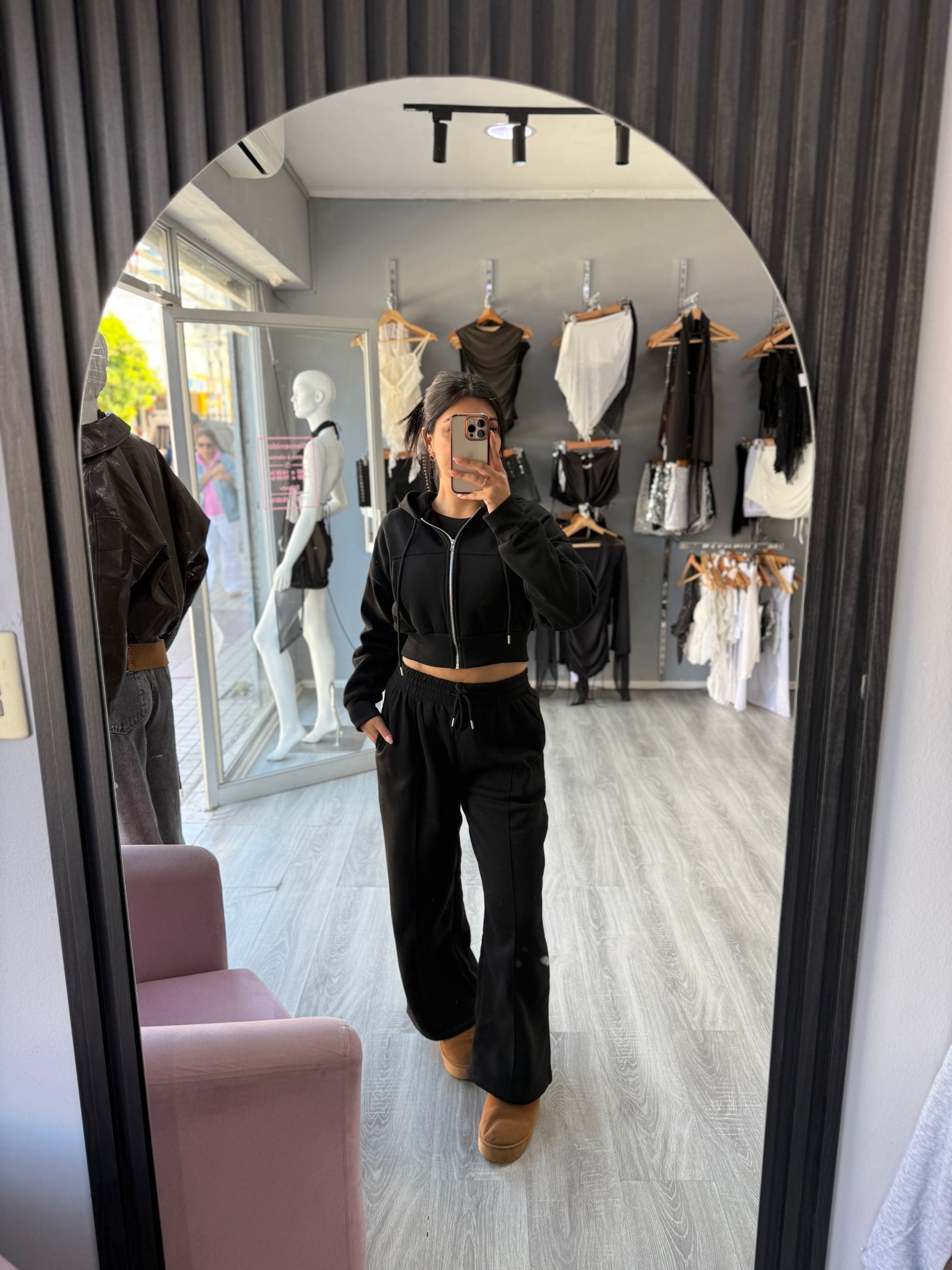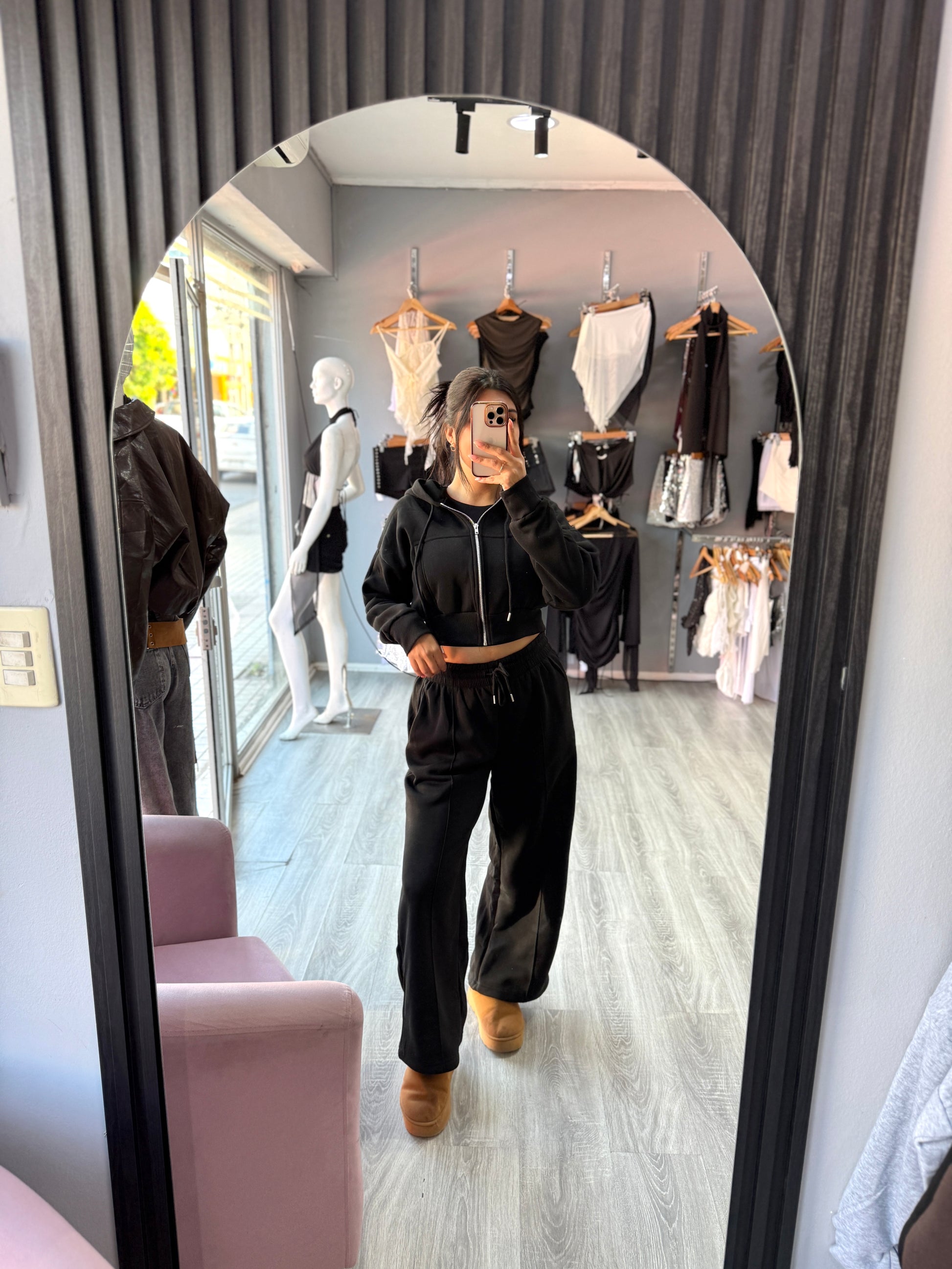 - Pantalón tiro alto, Poleron crop con gorro y bolsillos. Micropolar interior.