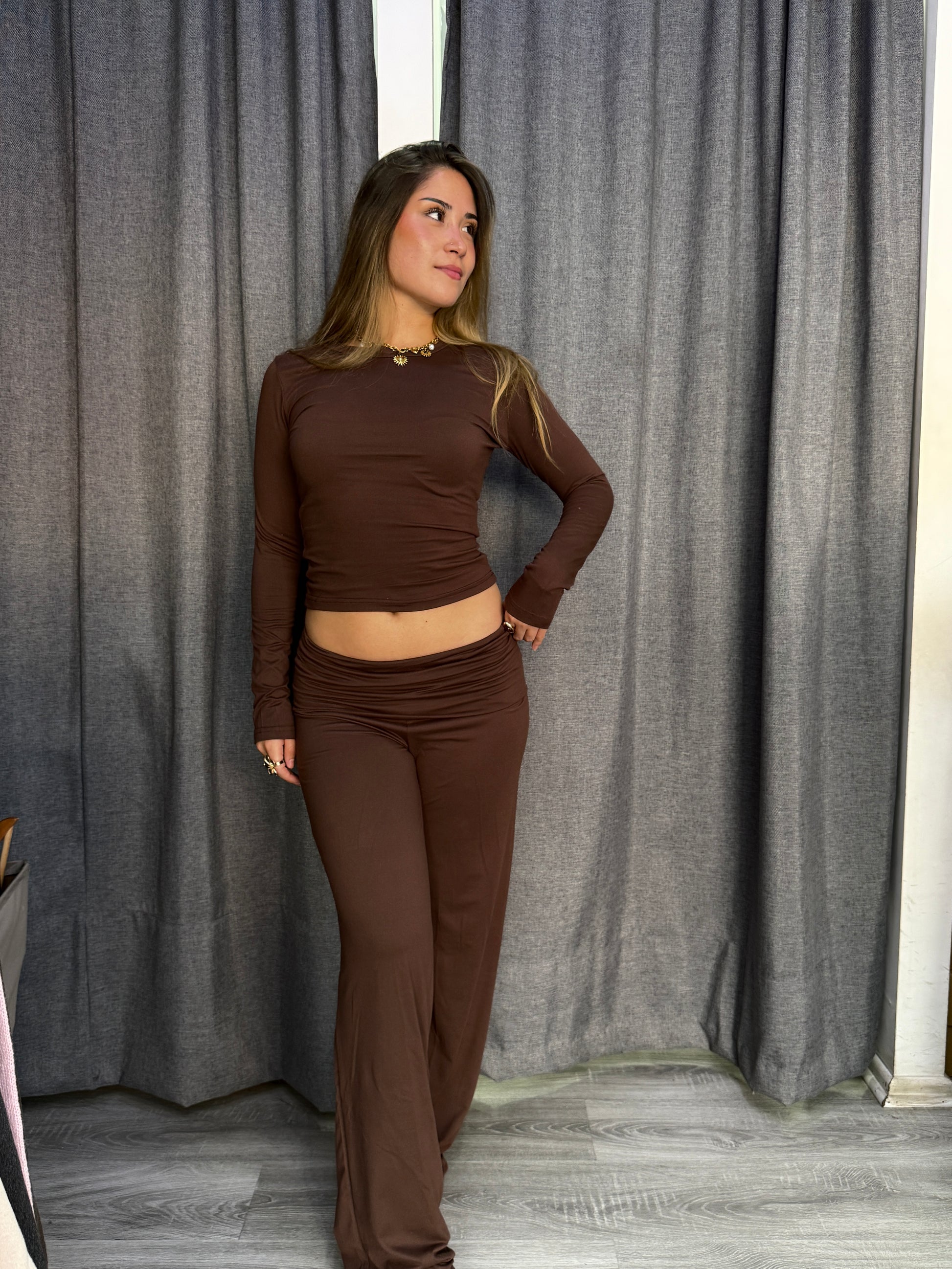Conjunto de algodón! Muy estiloso y comfy 🫶🏼 polera básica y calzas con doble pretina estilo flare. Talla estándar! Elasticado! Abarca hasta 42 app.
